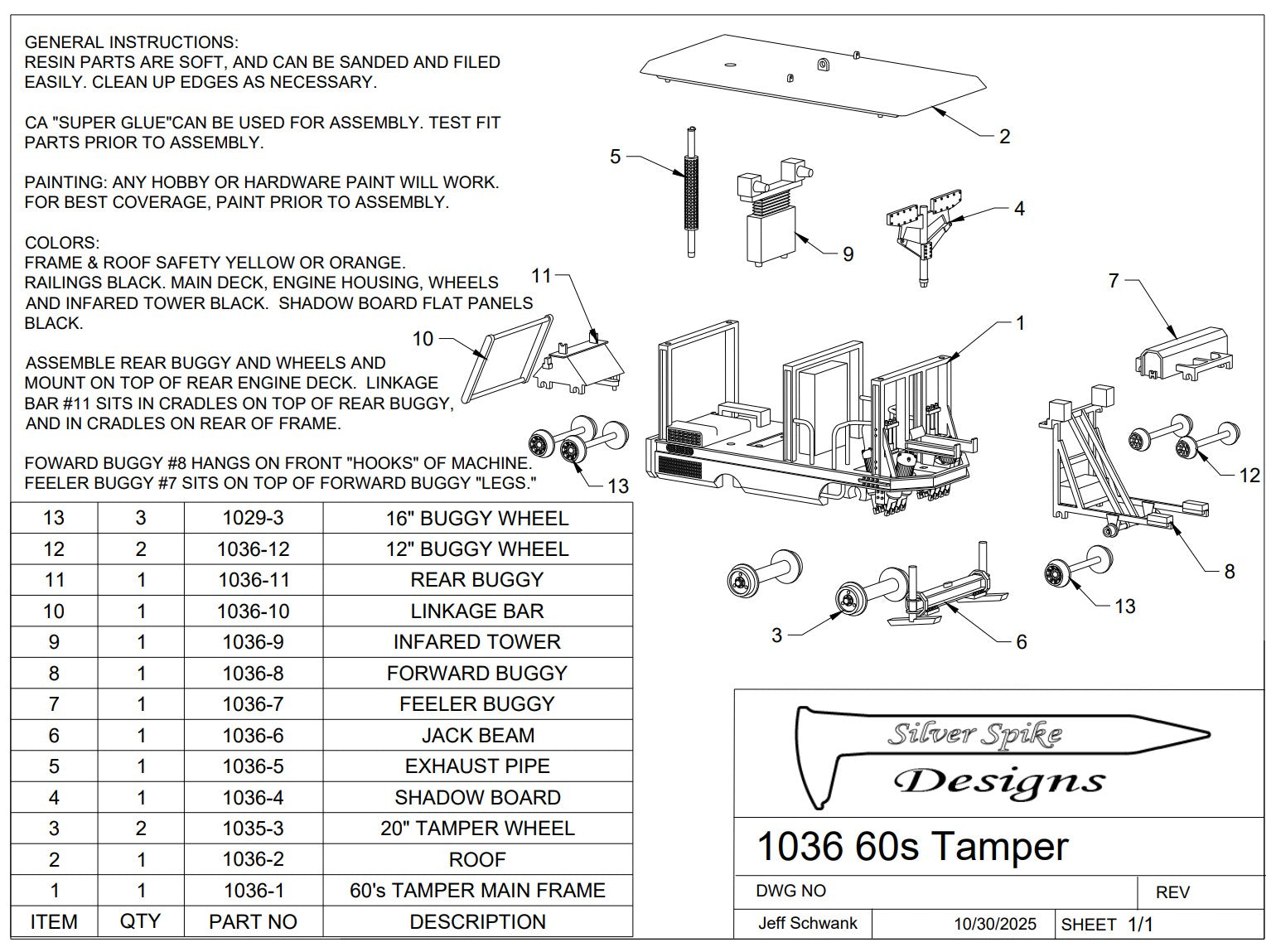 Kit includes a single piece frame, roof and wheels for the main tamper unit, as well as 3 separate alignment buggies.